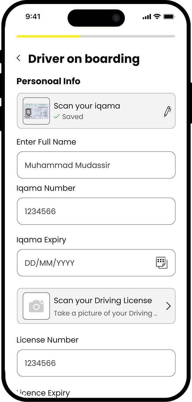 Fill out the driver registration form on our app.